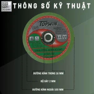 Đá cắt sắt TOPWIN NHẬP KHẨU 100 x 2 x 16mm